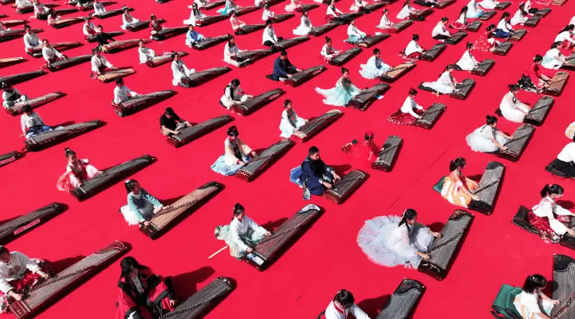 慶國(guó)慶·迎中秋“花好月圓”千人古箏展演 (李潔 攝)