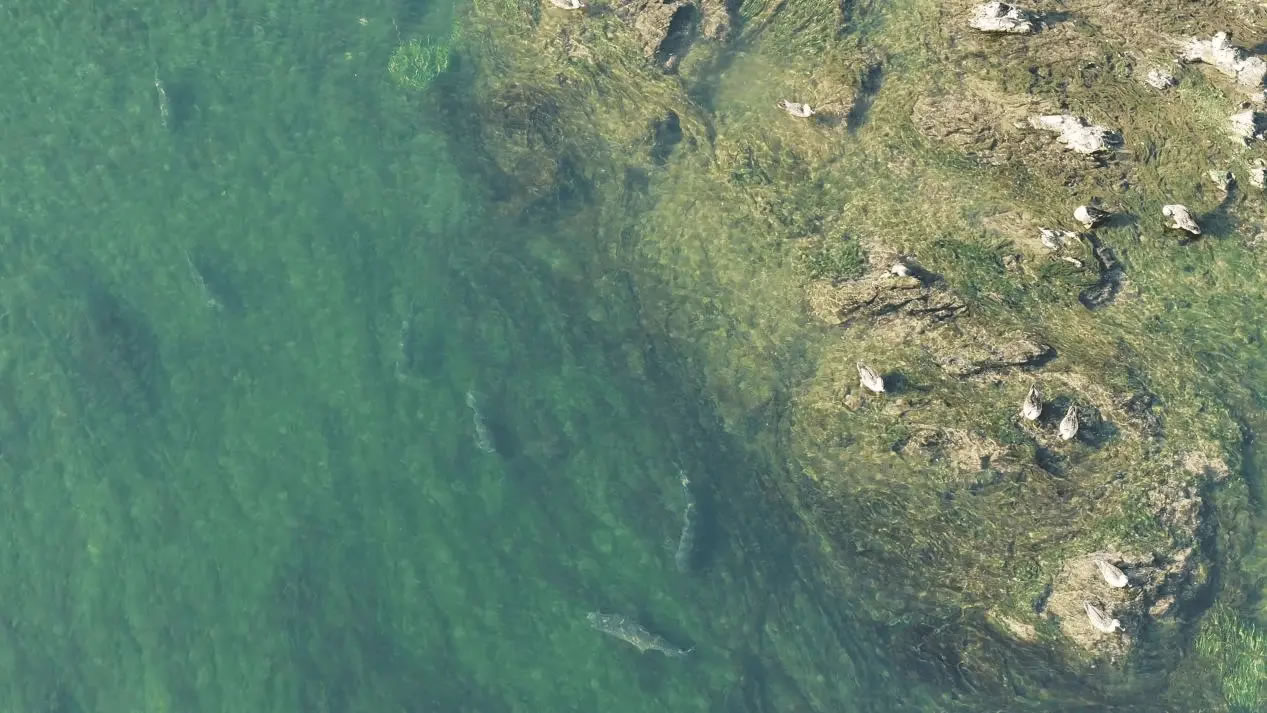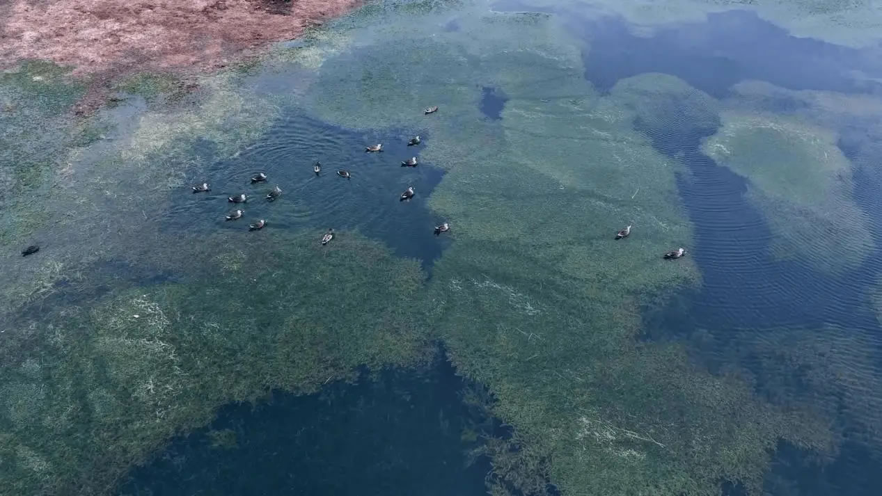 陽(yáng)光灑落時(shí),湖水清澈見(jiàn)底,魚(yú)兒在水中自在游弋,與岸邊景致構(gòu)成絕佳畫(huà)面。此外,黑翅長(zhǎng)腳鷸也不時(shí)現(xiàn)身灘涂,為這幅生態(tài)圖景再添一抹靈動(dòng)色彩。