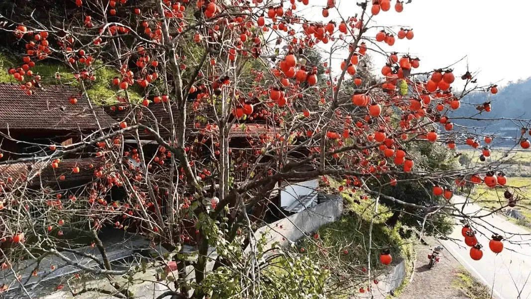 樂(lè)安鋪鄉(xiāng)聯(lián)豐村的山林同樣熱鬧非凡,蜿蜒山路旁的槭樹(shù)、楓香樹(shù)層層疊疊,紅褐與金黃交織成絢爛色塊,與錯(cuò)落分布的農(nóng)家院落相映成趣。隨著初冬的寒意悄然降臨,聯(lián)豐村的柿子樹(shù)“燃”起一片熱烈的“紅火”,熟透的柿子,宛如一盞盞喜慶的紅燈籠,將山村裝點(diǎn)得明艷動(dòng)人,在陽(yáng)光輕撫下,橙紅的柿子透著誘人光澤,與遠(yuǎn)處的山林相襯,色彩斑斕。游客們或手持相機(jī),定格“柿”景,歡聲笑語(yǔ)在鄉(xiāng)村回蕩。引得游人紛至沓來(lái),沉醉于這獨(dú)特的田園冬韻之中。