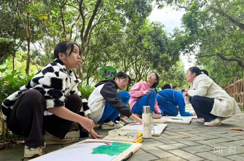 學(xué)生在肇慶龍溪棧道進行創(chuàng)作寫生(央廣網(wǎng)記者 官文清 攝)