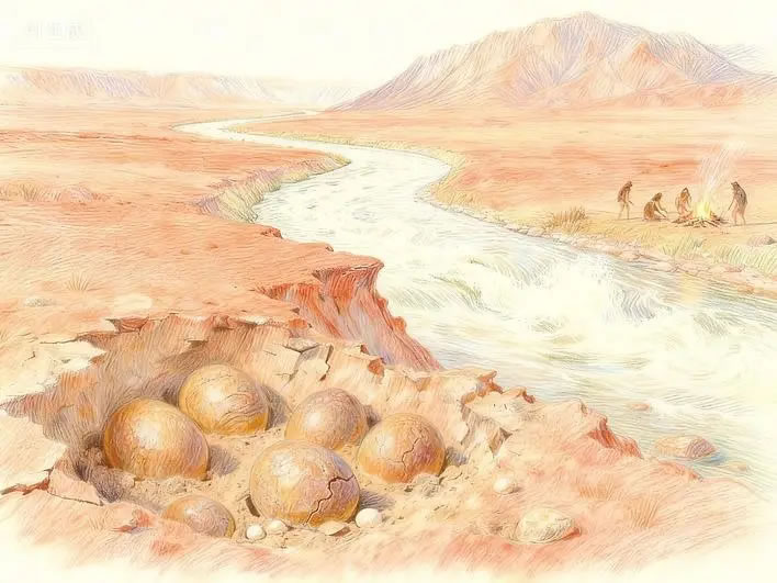 研究顯示,青龍山段古漢江河床曾經歷多次構造抬升(單次60米至80米)、河道北移及河谷下切,現(xiàn)存山頂325米級階地與漢江現(xiàn)河床(海拔僅170米)形成鮮明對比。這一演化過程不僅塑造了青龍山獨特的地貌,更可能成為全球罕見“埋藏淺、出露廣”的恐龍蛋化石群形成的關鍵因素。