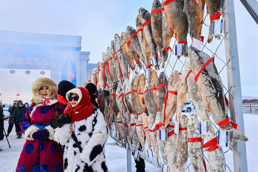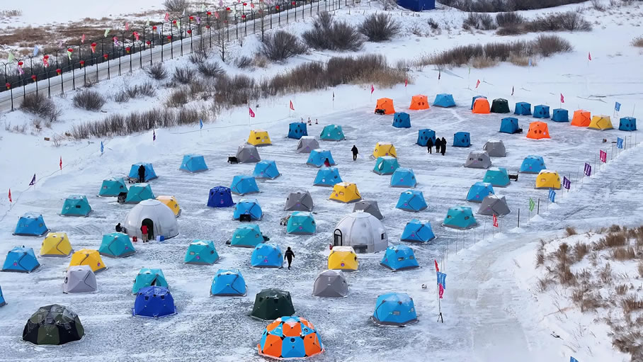 活動融合冰釣體驗(yàn)、民俗展演與文化展示等,為游客打造了一場集運(yùn)動、美食、互動于一體的沉浸式冰雪文旅盛宴。作為核心項(xiàng)目,中俄界河冰釣與冰捕區(qū)備受矚目。界河之上,五顏六色的暖帳錯落排布,冰釣愛好者早已按捺不住垂釣熱情,在帳篷內(nèi)生起暖爐、鑿開冰面、下好魚餌,支起小板凳,靜觀浮漂等候“佳音”。