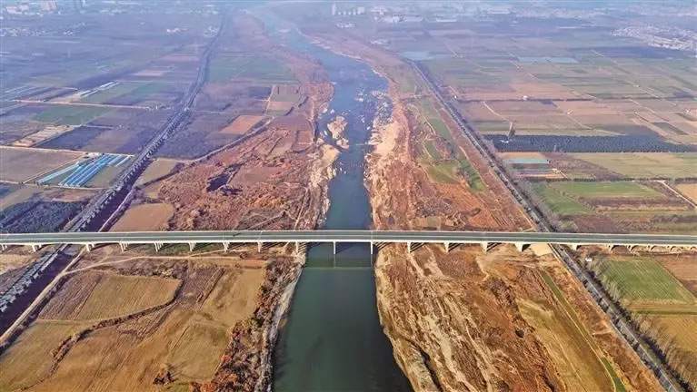 全長1106米的渭河特大橋是眉太高速公路控制性工程。圖為12月21日航拍的渭河特大橋(資料照片)。