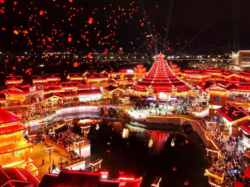 臨近午夜,榆樹灣·青春廣場迎來全天氛圍最高潮,游客們在孔明燈燈面上寫下新年愿望,在工作人員的指引下有序放飛。點點燈火隨風(fēng)飄蕩,與夜空融為一體,構(gòu)成“千盞飛燈映星河”的浪漫畫面。