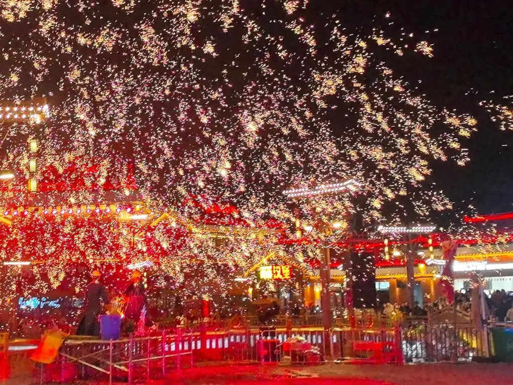 在湖南省懷化市鶴城區(qū)榆樹灣·青春廣場,一場“非遺+祈福”的盛典將節(jié)日氣氛推向高潮。元旦當(dāng)天,儺面舞者隨著鼓點騰躍,神秘古樸;傳承人赤腳踏上36把鋼刀搭成的“刀山”,引來陣陣驚嘆。夜幕降臨,打鐵花表演現(xiàn)場,傳承人將鐵水拋向空中,再用木板奮力擊打,千點萬點金花四濺,打造出“火樹銀花不夜天”的絕美景象。
