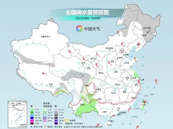 由于水汽條件較差,今起至周末,我國大部地區(qū)以晴天為主,但西南地區(qū)東部今后三天雨雪比較頻繁,另外,新疆、東北有分散的降雪。其中今天,新疆阿勒泰和西南部山區(qū)、青海南部、西藏東南部、四川盆地西部、云南東北部、東北地區(qū)大部、內蒙古東部等地的部分地區(qū)有小到中雪或雨夾雪;云南東南部、貴州西部、江蘇東南部、臺灣島東部等地的部分地區(qū)有小雨。