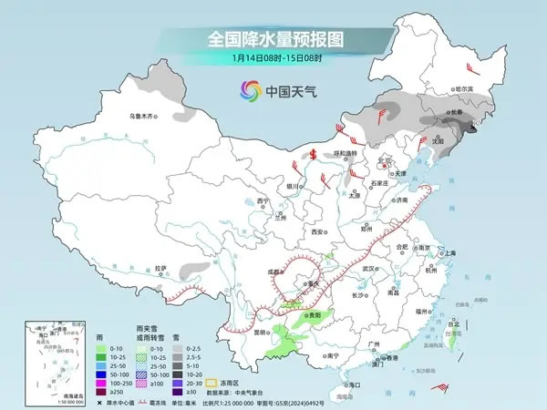中國天氣網(wǎng)訊 今明兩天(1月14日至15日),全國大部繼續(xù)維持雨雪稀少的格局,后天起降水將呈現(xiàn)增多趨勢。目前,冷空氣實力不強、位置偏北,主要影響東北地區(qū)等地,不過17日起,新一股強冷空氣將給我國大部地區(qū)帶來明顯降溫,屆時也會扭轉近期偏暖的格局。