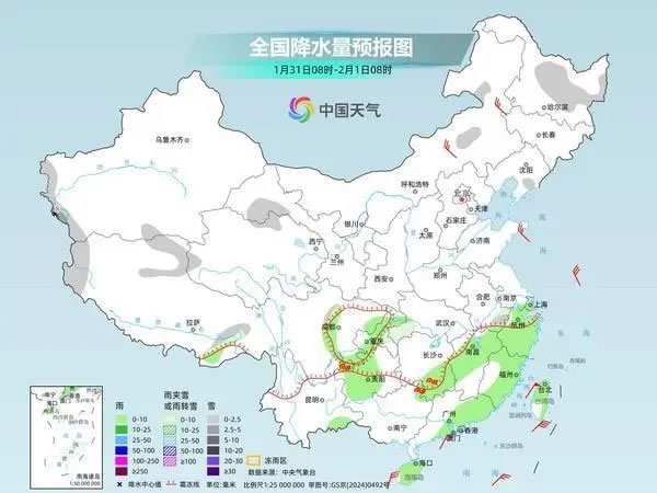 今天,雨雪范圍將明顯縮小,預(yù)計(jì)新疆南疆西部山區(qū)、西藏西部和北部、青海北部、甘肅河西、內(nèi)蒙古東部、黑龍江中東部、遼寧南部、湖北西南部、安徽南部、浙江西北部等地部分地區(qū)有小雪或雨夾雪,其中,新疆南疆西部山區(qū)等地部分地區(qū)有中到大雪;貴州西部、湖南南部和廣西北部高海拔山區(qū)局地有凍雨。西南地區(qū)東部、江南中東部及廣東中東部、海南島、臺(tái)灣島等地部分地區(qū)有小雨。