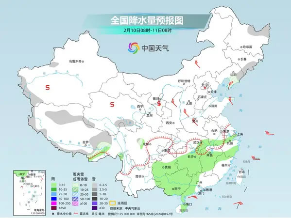 今明兩天(2月9日至10日),南方多地仍有陰雨雪天氣,貴州、湖南等局地或現(xiàn)凍雨。隨著寒潮落幕,今天起中東部更多地方將加入升溫行列,未來十天氣溫整體將在波動中回升,多地累計升幅可達(dá)10℃以上。春運期間,公眾需密切關(guān)注天氣變化,注意雨雪天氣對交通出行的不利影響。