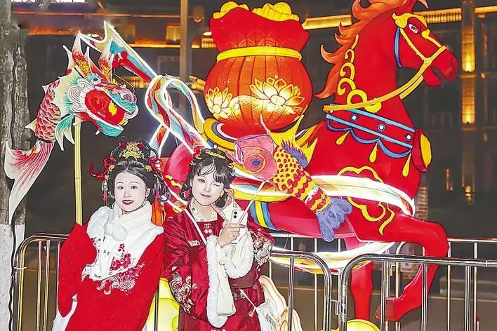 新春佳節(jié),武漢園博園成為市民和游客體驗(yàn)?zāi)晁椎臒衢T(mén)去處。(湖北日?qǐng)?bào)全媒記者 馮袁玥 通訊員 徐志剛 攝)