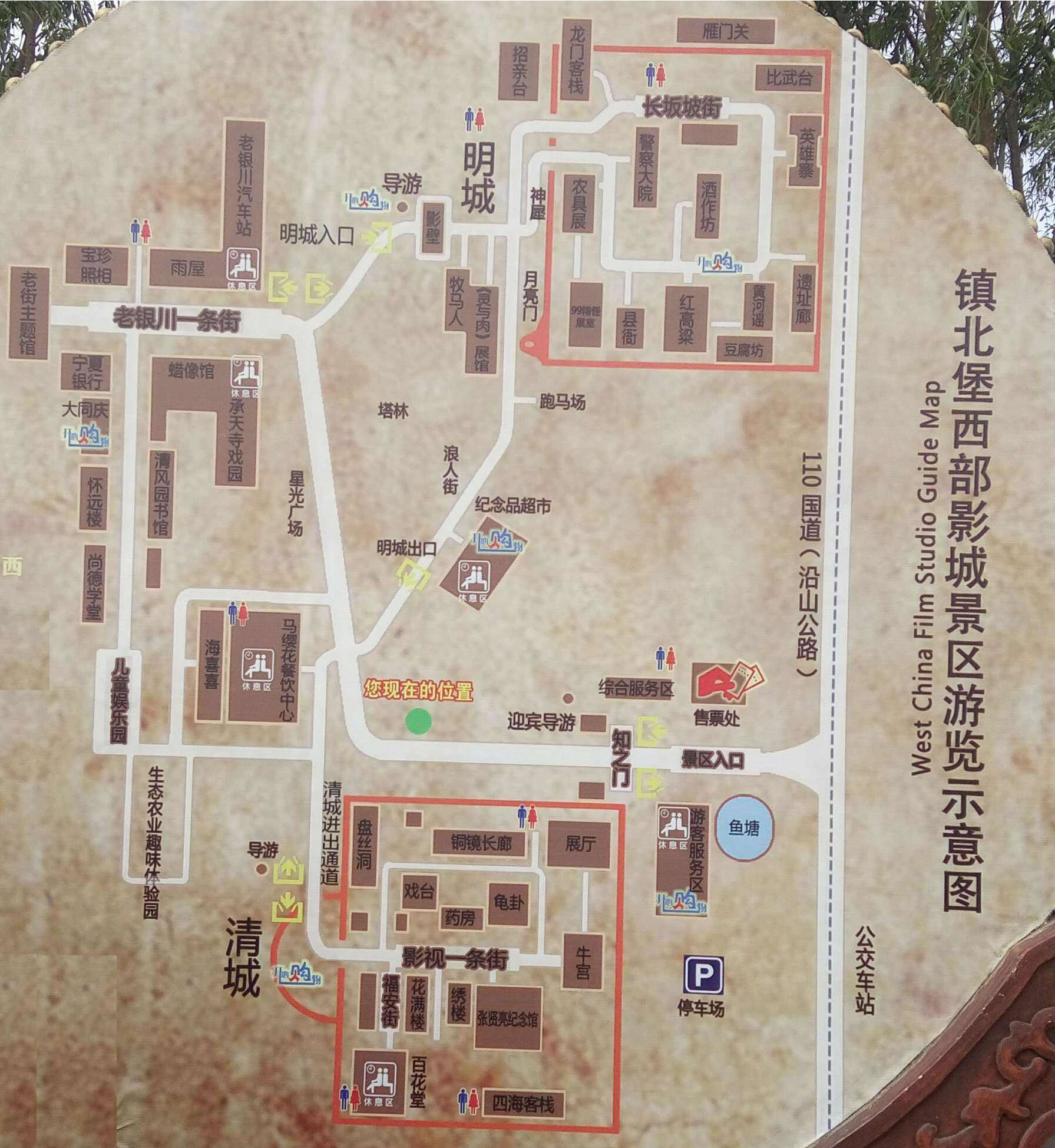 在南門南關清真寺乘坐17路中巴車直達鎮(zhèn)北堡西部影城。
