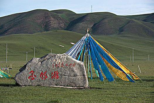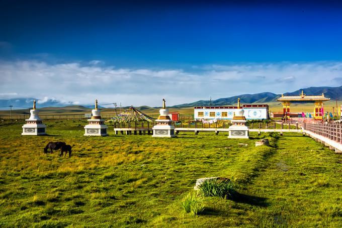 金銀灘的黃金季節(jié)是7、8、9三個月,鮮花盛開,百鳥飛翔,尤其是百靈鳥兒的歌聲,動聽迷人。這里是一片碧草如茵的大草原。浮云般的羊群,棕黑相間的牦牛,星星點點地徜徉在青草和野花叢中。穿著藏服的藏民,騎著駿馬悠然地在草原上緩緩而來。遠(yuǎn)處,山巒起伏,偶有雄鷹飛過的身影,蓮花般的蒙古包散落在白云深處。金銀灘草原牧草肥美、牛羊肥壯,人們以金銀遍地來形容這片美麗而富饒的土地,故得名“金銀灘”。