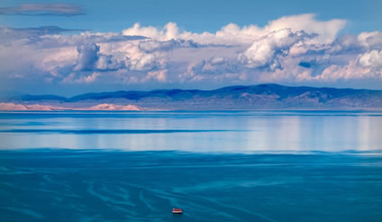 青海省青海湖景區(qū),位于青藏高原的東北部、西寧市西北部、剛察縣南部,距西寧市136公里。青海湖古稱“西!保址Q“仙!、“鮮水海”、“卑禾羌!,是中國最大的內(nèi)陸湖、最大的咸水湖。湖面海拔3196米,湖岸線長360公里,面積4583平方公里,湖水冰冷且鹽份很高。湖中有海心山,四周高山環(huán)繞:北面是大通山,東面為日月山,南面是青海南山,西面為橡皮山。湖區(qū)盛夏時節(jié)平均氣溫僅15℃,為天然避暑勝地。