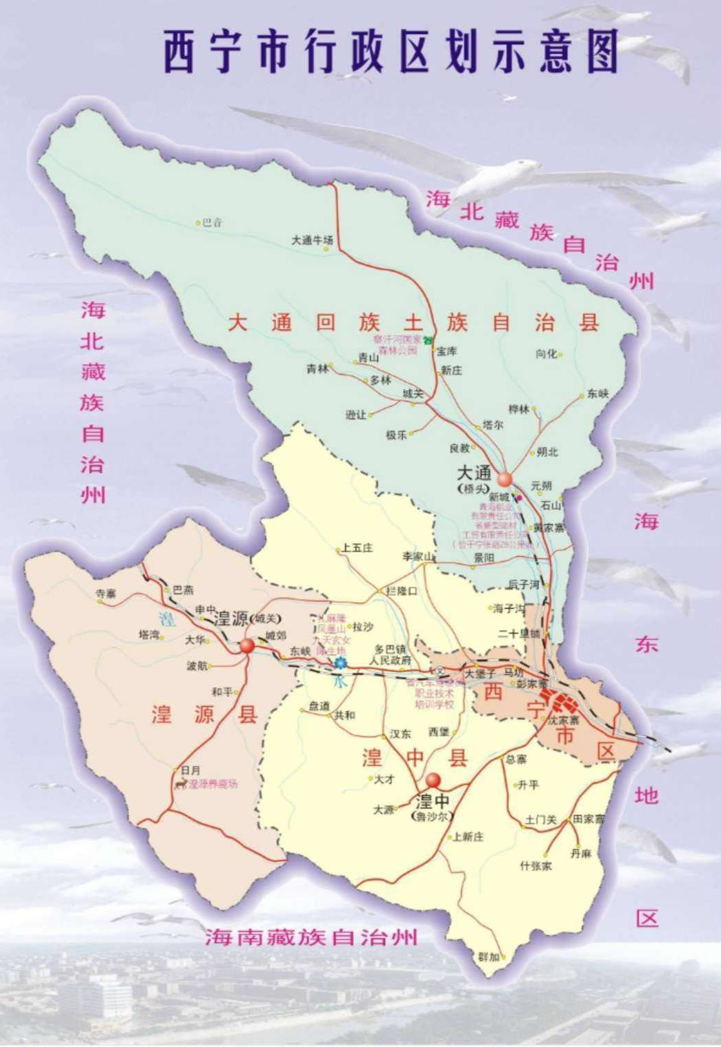 西寧市轄5個(gè)區(qū)、2個(gè)縣: