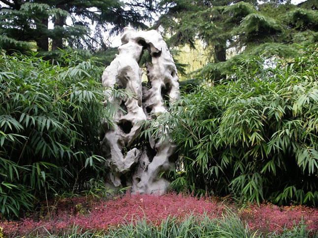 趵突泉原來還有一座麟石,“七七事變”時(shí)被日本帝國主義的飛機(jī)炸毀。四座靈石僅存的只有這一龜石。它是一座玲瓏剔透、栩栩如生的太湖石,高近4米,重約8噸。該石挺拔露骨,多空竅,筋絡(luò)明顯,多凹凸,具有太湖石品中的“皺、瘦、透、漏”的特點(diǎn)。