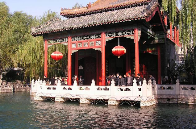 在趵突泉以南石灣泉處的白雪樓,是為紀(jì)念明朝文學(xué)家、后七子領(lǐng)袖李攀龍所建,原樓已不存,九六年在原址上重建了與白雪樓連為一體的戲劇大舞臺(tái),于同年建成。這里常年舉辦以京劇為主的各種戲劇演出,已成為全國乃至世界知名的演出活動(dòng)中心。趵突泉東南處的滄園據(jù)說是李攀龍?jiān)x書的地方,院內(nèi)三廳兩院,外廊環(huán)繞,曲廊相圍,院中奇花異木,蒼松滴翠,當(dāng)代著名小花鳥畫家王雪濤紀(jì)念館1987年建于此處,200余件繪畫常年陳列展出。