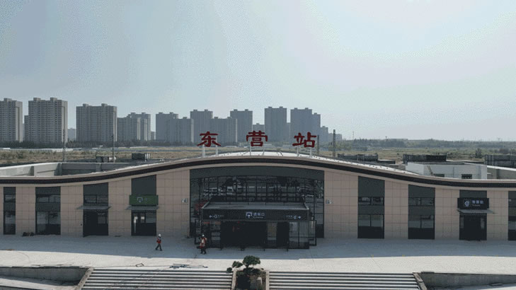 環(huán)渤海城際鐵路經(jīng)河口區(qū)、墾利,在中心城區(qū)沿西一路向南,與濟南-濱州-東營城際軌道預(yù)留通道匯合并線,到達東營南站,與黃大鐵路換乘,再向南經(jīng)大王轉(zhuǎn)青島方向,在西一路黃河路交叉口東北側(cè)和火車南站設(shè)有兩個城際軌道站,分別與公路客運總站和黃大鐵路換乘。