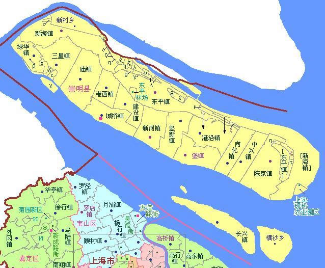 崇明區(qū)轄16個鎮(zhèn)、2個鄉(xiāng):