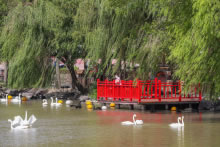 狐猴島以獨(dú)特的無障礙展示方式為特色,營造了人與動物和諧相處的氛圍,“空中廊道”可以讓游客從不同角度觀察環(huán)尾狐猴在樹上休憩的狀態(tài);環(huán)島的“觀光道”可以讓游客感受天鵝湖的風(fēng)光;“行為展示區(qū)”可以讓游客欣賞環(huán)尾狐猴的跳躍、取食等行為,同時(shí)展區(qū)內(nèi)富有非洲氣息的亭臺可以讓游客休憩。狐猴島每月第一周周二9:00~11:00進(jìn)行停展維護(hù)(具體以現(xiàn)場公告為準(zhǔn))。