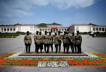 組雕于2009年9月26日落成,反映了抗戰(zhàn)時(shí)期朱德、彭德懷、葉劍英、林彪、聶榮臻、羅榮桓、劉伯承、徐向前、賀龍、鄧小平、左權(quán)共11位八路軍將領(lǐng)的形象,由清華大學(xué)美術(shù)學(xué)院教授,雕塑家李象群設(shè)計(jì)制作,長10m、寬3.5m、高3.8m。截止2009年是國內(nèi)展示人物最多、體量最大的領(lǐng)袖群雕。