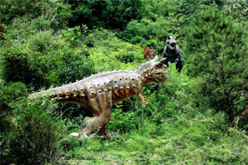 此處放置仿生恐龍十余種,是為了重現(xiàn)當(dāng)時(shí)恐龍統(tǒng)治地球的雄風(fēng)!