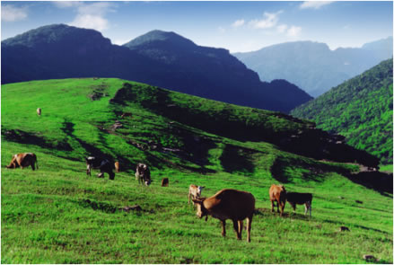 舜王坪有5400余畝草地,綠草如茵。據(jù)當(dāng)?shù)乩相l(xiāng)介紹,舜王坪生長(zhǎng)著十幾種中草藥。牛吃后,既防病又上膘。每年春忙過(guò)后,周圍村的農(nóng)民就把牛趕上舜王坪,任牛群自由生活,無(wú)人管理。晚上,每個(gè)牛群聚集一方,公牛圍成一圈,雙角簇立,擔(dān)任警衛(wèi),保護(hù)在圈內(nèi)的母牛、小牛過(guò)夜,防止野獸襲擊。秋忙時(shí)節(jié),村民才趕牛下山,秋收秋種。