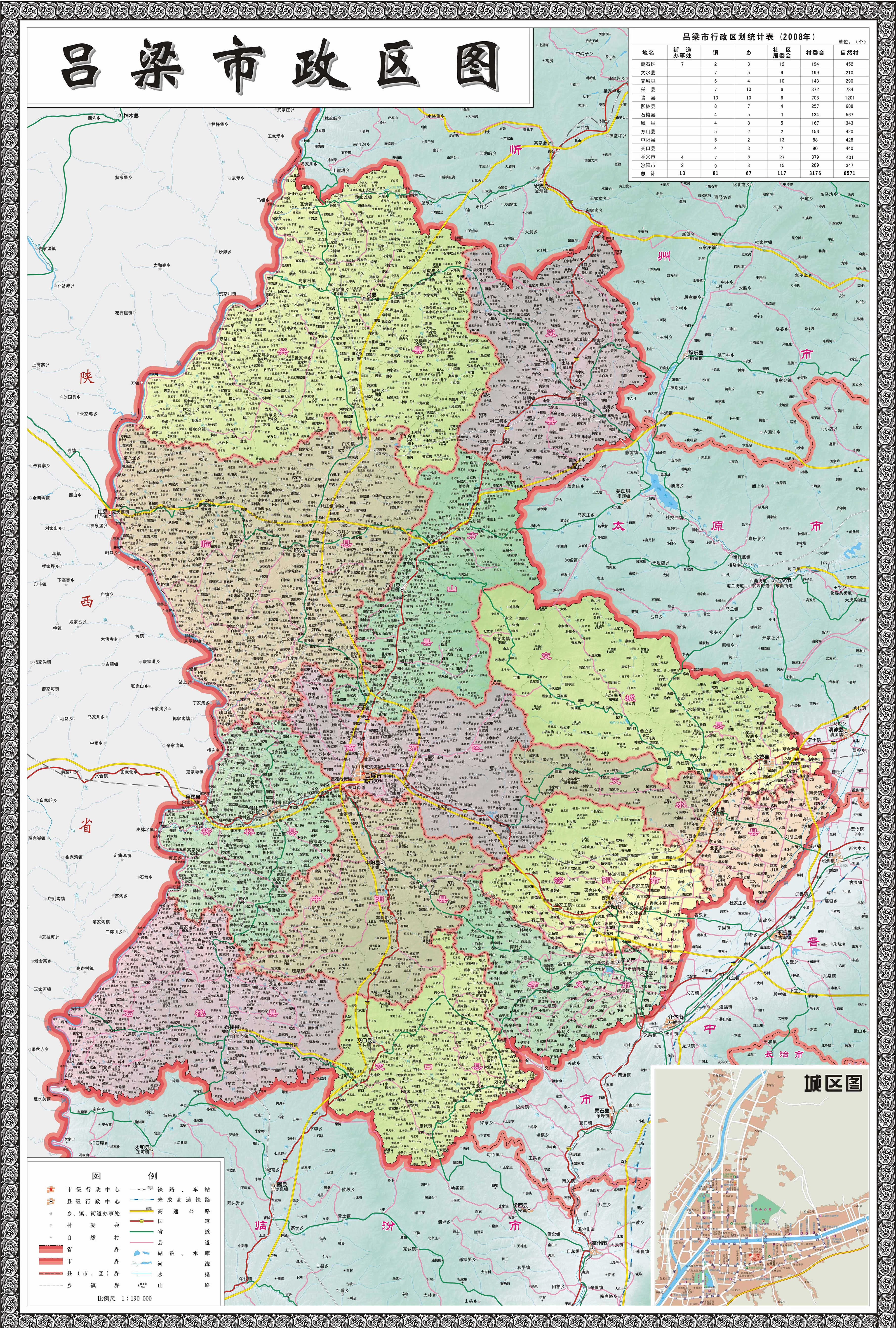 呂梁市轄1個市轄區(qū)、10個縣,代管2個縣級市: