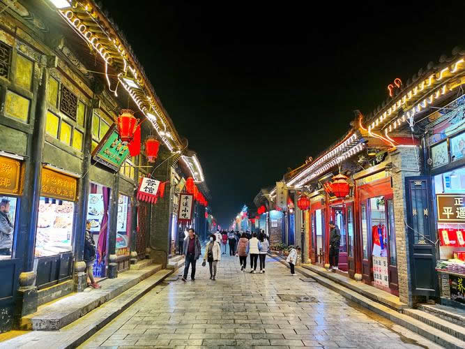 平遙古城的交通脈絡(luò)由縱橫交錯(cuò)的四大街、八小街、七十二條蚰蜒巷構(gòu)成。南大街為平遙古城的中軸線,北起東、西大街銜接處,南到大南門(迎熏門),以古市樓貫穿南北,街道兩旁,老字號與傳統(tǒng)名店鋪林立,是最為繁盛的傳統(tǒng)商業(yè)街,清朝時(shí)期南大街控制著全國百分之五十以上的金融機(jī)構(gòu)。被譽(yù)為中國的“華爾街”。西大街,西起下西門(鳳儀門)、東和南大街北端相交,與東大街呈一條筆直貫通的主街。著名的中國第一家票號——日升昌,就誕生于古城西大街,被譽(yù)為“大清金融第一街”。東大街,東起下東門(親翰門)、西和南大街北端相交,與西大街呈一條筆直貫通的主街。北大街,北起北門(拱極門)、南通西大街中部。