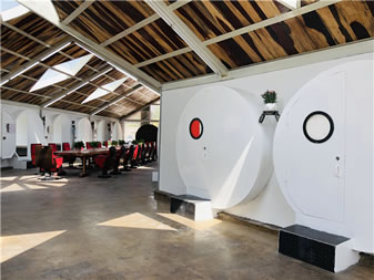 蝸牛公寓位于云岡石窟景區(qū)東山,是東山菩提藝術(shù)區(qū)的一部分,由云岡石窟研究院主導(dǎo)創(chuàng)意,用廢舊水泥管、廢舊鋼鐵等廢舊材料打造出來的綠色環(huán)保寫生建筑。走進(jìn)“蝸牛公寓”,內(nèi)含會客廳、28間臥室,洗漱臺、衛(wèi)生間,其中地下公共部分還配有電影放映室、臺球室、酒吧、咖啡廳等公共休閑娛樂設(shè)施,長廊的墻壁,藝術(shù)家或藝術(shù)院校學(xué)生可以隨意涂鴉。這個特別隨意且有藝術(shù)范兒的空間,為到云岡石窟景區(qū)寫生創(chuàng)作、旅游休閑的人們提供了優(yōu)質(zhì)舒適的住宿、創(chuàng)作、娛樂空間。