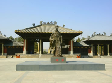 曇曜廣場位于云岡石窟景區(qū)入口處,占地6000多平方米,是為紀(jì)念云岡石窟的開創(chuàng)者曇曜高僧而建。整個廣場及亭廊建筑渲染著濃重的北魏皇家氣象,廣場中央的曇曜雕塑以瀟灑大器的寫意手法,塑造了一代佛門大德的藝術(shù)形象,高古清逸,似篳路藍(lán)縷,風(fēng)塵仆仆,卻是袈裟飄逸,似乎從千年前的塵埃中走來。公元460年,北魏文成帝復(fù)興佛法,命曇曜高僧主持開鑿了規(guī)模宏大的云岡石窟,因此,曇曜不僅是開鑿云岡石窟的創(chuàng)始人,也是北魏著名的佛學(xué)大師和譯經(jīng)大家,是北魏佛教昌盛的奠基人。