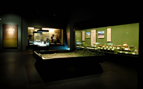 陜西歷史博物館基本陳列《陜西古代文明》,于2008年3月正式開(kāi)放,以歷史進(jìn)程為線索,選取各時(shí)代的典型文物進(jìn)行組合陳列,來(lái)揭示陜西地區(qū)古代社會(huì)文明發(fā)展?fàn)顩r。該陳列展廳面積4600平方米,共三個(gè)展室,分為七個(gè)部分(史前、周、秦、漢、魏晉南北朝、隋唐、宋元明清),精選的2000余件珍貴文物包括:反映古代先民生活情景和藝術(shù)追求的豐富多姿的彩陶器皿,反映周人興起與鼎盛的青銅器,反映秦掃六合統(tǒng)一天下氣勢(shì)的青銅劍、經(jīng)機(jī)、兵馬等,以及顯示秦漢奮發(fā)崛起精神的鋼建筑構(gòu)件、大型瓦當(dāng),還有反映封建盛世繁榮景象的精美的唐代金銀器和唐三彩等,并配以遺址模型、圖表、照片等輔助展品。系統(tǒng)地展現(xiàn)了自115萬(wàn)年前至1840年陜西地區(qū)的古代歷史。由于中國(guó)古代社會(huì)周、秦、漢、隋、唐幾個(gè)盛期都是在陜西地區(qū)建都,所以該陳列以這幾個(gè)時(shí)期為重點(diǎn),既突出反映了陜西地區(qū)古代燦爛的文化,也反映了這幾個(gè)時(shí)期中國(guó)社會(huì)經(jīng)濟(jì)文化發(fā)展的最高水平。