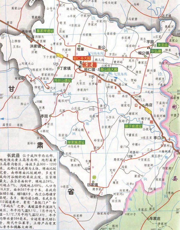長(zhǎng)武縣轄5個(gè)鎮(zhèn)、6個(gè)鄉(xiāng):