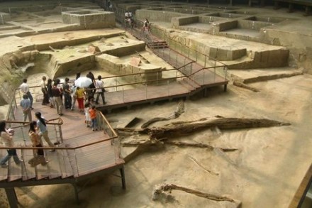 金沙遺址再現(xiàn)了古代蜀國輝煌。主體文化遺存的時代約商代晚期至西周時期,重要遺跡有大型建筑基址、祭祀?yún)^(qū)、一般居住址、大型墓地等,出土金器、銅器、玉器、石器、象牙器、漆器等珍貴文物5000余件,還有數(shù)以萬計的陶片、數(shù)以噸計的象牙以及數(shù)以千計的野豬獠牙和鹿角。