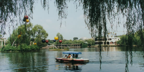 怡湖園:位于成都市北郊青白江新建成綿高速公路旁的怡湖公園,距離成都市區(qū)約30公里,占地約213畝,其中湖面積約70畝。該園于1986年由青白江區(qū)建委動(dòng)工興建,短短兩年多時(shí)間建成,于1988年正式對(duì)外開放。怡湖公園屬于現(xiàn)代化的大型綜合公園,該園以其強(qiáng)烈的現(xiàn)代化氣息的城市園林風(fēng)格建筑和異域情調(diào)吸引了成千上萬的中外游客,上海學(xué)林出版社曾將該園編入面向國(guó)內(nèi)外發(fā)行的《中國(guó)旅游名勝》畫冊(cè)。該園大門,設(shè)計(jì)精巧,造型獨(dú)特,雅致舒暢,極富象征意義。