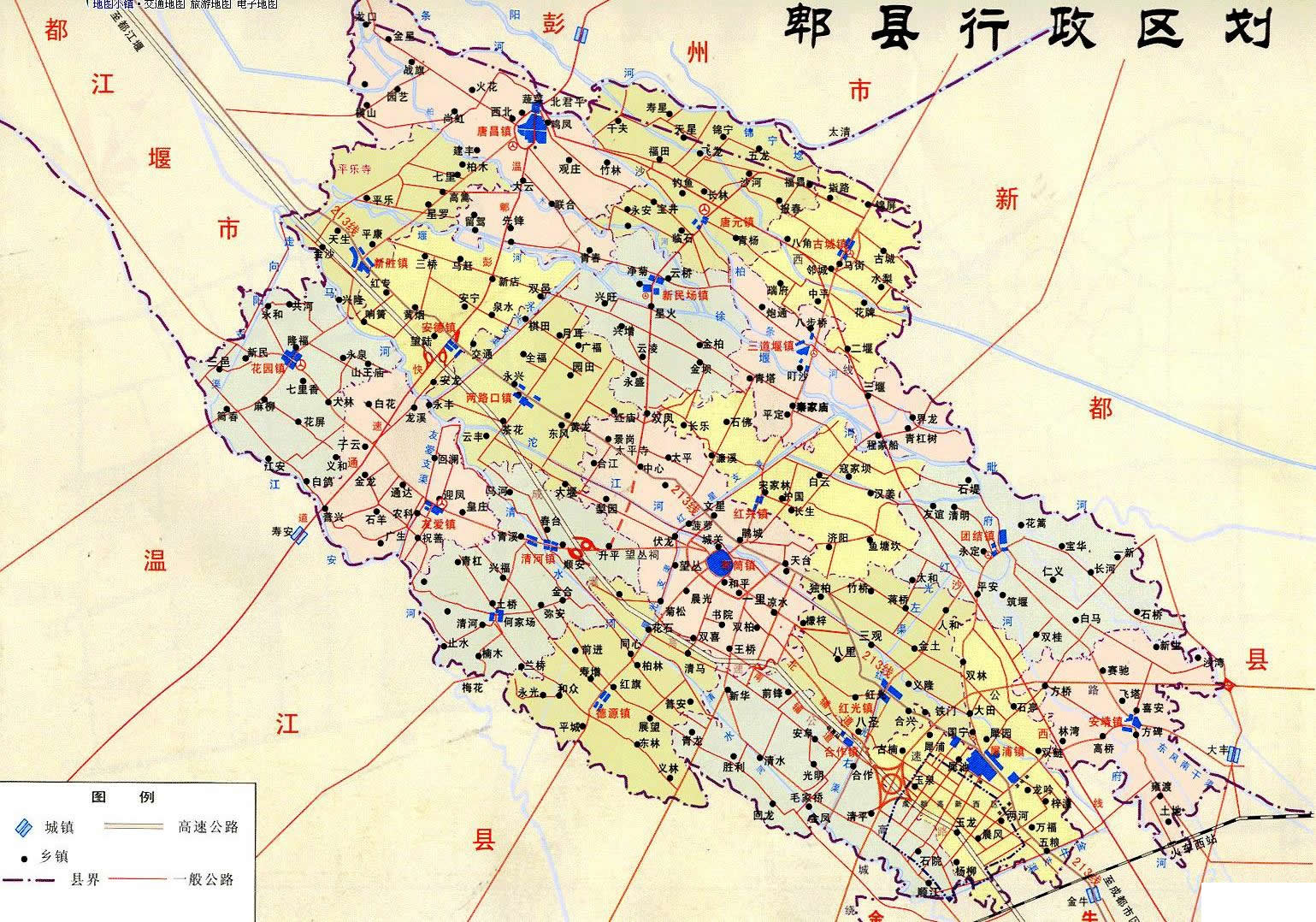 郫縣轄14個鎮(zhèn):郫筒鎮(zhèn)、犀浦鎮(zhèn)、紅光鎮(zhèn)、安靖鎮(zhèn)、團(tuán)結(jié)鎮(zhèn)、唐昌鎮(zhèn)、三道堰鎮(zhèn)、新民場鎮(zhèn)、花園鎮(zhèn)、安德鎮(zhèn)、唐元鎮(zhèn)、德源鎮(zhèn)、古城鎮(zhèn)、友愛鎮(zhèn)