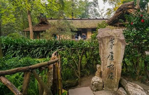 杜甫草堂博物館依據(jù)杜詩(shī)描寫和明代格局于1997年恢復(fù)重建了“茅屋景區(qū)”,重現(xiàn)了詩(shī)人故居的田園風(fēng)貌,營(yíng)造出濃厚的詩(shī)意氛圍。