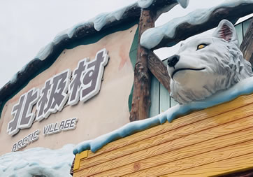 北極村分為北極狼館和北極狐館,分別生活著“北極狐”和“北極狼”。北極狐全身都是蓬松的絨毛,秋冬季是瑩白色,春夏則會變?yōu)榍嗪稚。北極狼被贊為真正“踏雪無痕"的猛獸,可以在雪地以65公里/小時速度奔跑,并且北極狼家族的皮毛有紅色、灰色、白色、黑色。