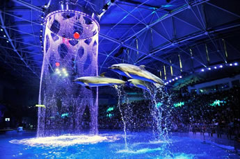 鯨豚館可以見到海洋里的兩種精靈:白鯨和海豚。此外,每天這里都會上演白鯨和海豚的科普秀,通過優(yōu)秀馴養(yǎng)師與動物明星的互動,人們可以更加直觀地了解白鯨和海豚的特性。
