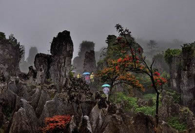 華鎣山的石柱雄壯秀拔,石生樹、樹纏石等自然景觀隨處可見,旅游區(qū)內(nèi)的植被更是枝葉繁茂、郁郁蔥蔥。經(jīng)初步估算旅游區(qū)內(nèi)的植被種類竟達304種之多。珍稀的香果樹、穗花杉等多種國家一、二級的保護植物似珍珠般的散落于旅游區(qū)。山下以松樹、杉樹為主;山上以藤蔓、稀有樹種為主;茂密的白夾竹、茨竹、方竹、灌木、喬木漫山遍野,掩映于奇特的石林之中,植被覆蓋率達95%以上的旅游區(qū)格外耀眼壯觀。而個別的罕見的植物植物學家們至今難以對它命名,從而更增加華鎣山神秘的色彩。