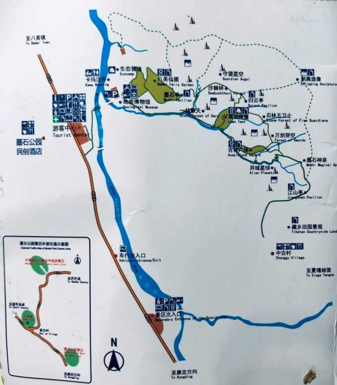 中國(guó)墨石公園景區(qū)位于四川省甘孜州道孚八美鎮(zhèn)卡瑪村與中古村交界處,地處中國(guó)最美景觀大道318國(guó)道核心區(qū),緊鄰丹巴美人谷、康定新都橋、雅江康巴漢子村等知名景區(qū),距八美鎮(zhèn)約6公里,川藏公路旁400米處。面積5平方公里,海拔約3500米。是香格里拉之巔海螺溝通向香格里拉之魂稻城亞丁的中轉(zhuǎn)站,擁有壯美草原、婉約濕地、奇幻墨石、特色民居、高原花海、金色彩秋、白塔圣寺、日出日落八大奇觀!按嘿p格桑夏避暑,秋觀彩林冬踏雪”是一年四季風(fēng)光的特色,而綿延在鮮水河斷裂帶上的墨石天然景觀更為世人向往,被譽(yù)為“中國(guó)最美景觀大道第八美”。
