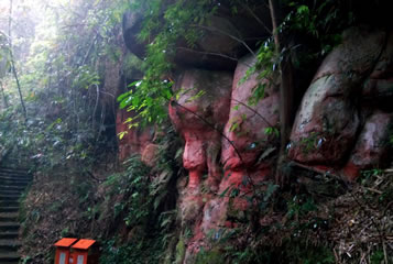 七個洞崖墓群有大小崖洞墓共28座,錯落分布在綿溪河畔的山崖上,其中7墓較集中,其余21墓分散錯落分布。集中的7個墓按北斗七星的形狀排列,均為長方形弧形頂墓室,內(nèi)部有聯(lián)通,墓門呈方形,由外到內(nèi)逐層縮小。墓室、石棺和峭壁上有各種浮雕共189幅,如伏羲女媧、夫妻宴飲、飛龍、舞女、花卉、雜技、燈籠等,工藝精美,同時(shí)還有珍稀的文字題記7處,均為漢字,分二類:一為紀(jì)年,有“熹平元年” “延光元年”等;二為姓氏,有“黃是(氏)作此冢一門,?(該字不可辨認(rèn))究苦知者謂我直,不知者奴”等涉及墓主身份的多則題記,涉及“李” “黃” “趙”等姓氏,這也是宜賓境內(nèi)發(fā)現(xiàn)的最早的文字遺存,漢字題記以及漢族姓氏的出現(xiàn),表明這些崖洞墓的主人為古代漢族人。沿著七個洞游步道往山上走大約三十米,有二十余個離地面較近的崖墓,通過臺階可以進(jìn)入墓室內(nèi)部。此外,附近崖壁上還有數(shù)個未完工的古崖墓,將兩千年前的崖墓開鑿過程完好地保留下來,在綿溪河上游幾公里范圍內(nèi)還存在著另外幾十個東漢崖墓。
