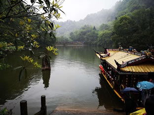 全山林木青翠,四季常青,諸峰環(huán)峙,狀若城廓,故名青城山。丹梯千級(jí),曲徑通幽,以幽潔取勝。景區(qū)內(nèi)外,天師洞和圓明宮幽靜是青城山的一大特色。