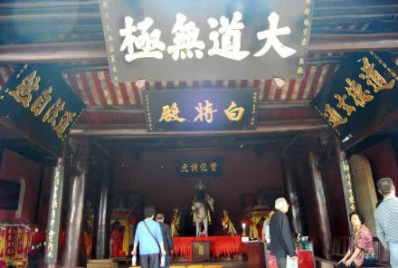 風洞樓下是白特殿。“特”是比馬還能跑的動物,它馬頭、驢身、騾尾、牛蹄,俗稱“四不像”,古人說“千里馬、萬里特”。傳說文昌帝君的坐騎就是全身色白的特,即“白特”,明代著名小說家馮夢龍曾撰寫對聯(lián):“梓潼帝君乘白特下臨凡界,三清老子騎青牛西出函關”。這座殿堂就因白特而得名。