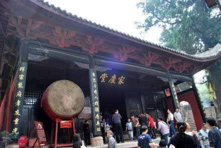 時雨亭旁的這座高臺建筑叫家慶堂。建于明代,叫啟元殿,清代培修之后更名為家慶堂。所謂“家慶堂”是指文昌帝君張亞子舉家歡聚之地。早在北宋初期,宋太祖趙匡胤就對張亞子一家8位主要成員加封圣號;南宋初年宋高宗趙構追封4位;又過了二十多年,南宋咸淳五年(1269年)再一次對張亞子的公主和女婿封了圣號,使加封的家庭成員達到14位。