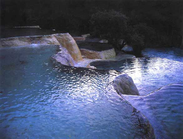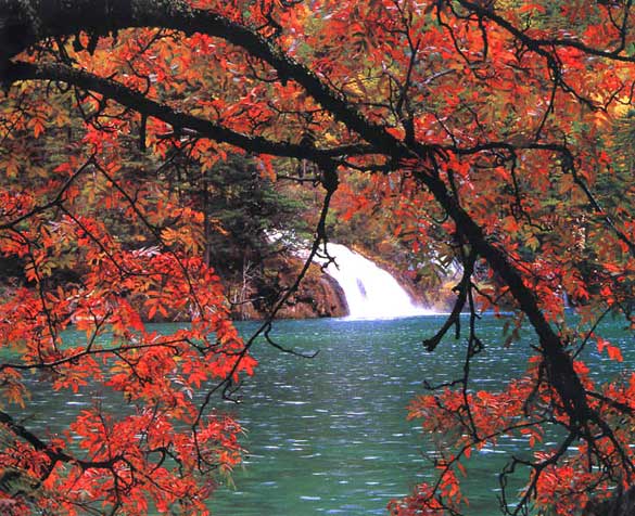 九寨溝內(nèi),清清碧水倒映藍天,魚翔蒼穹,鷹擊水底,呈現(xiàn)出謎一樣的童話世界。
