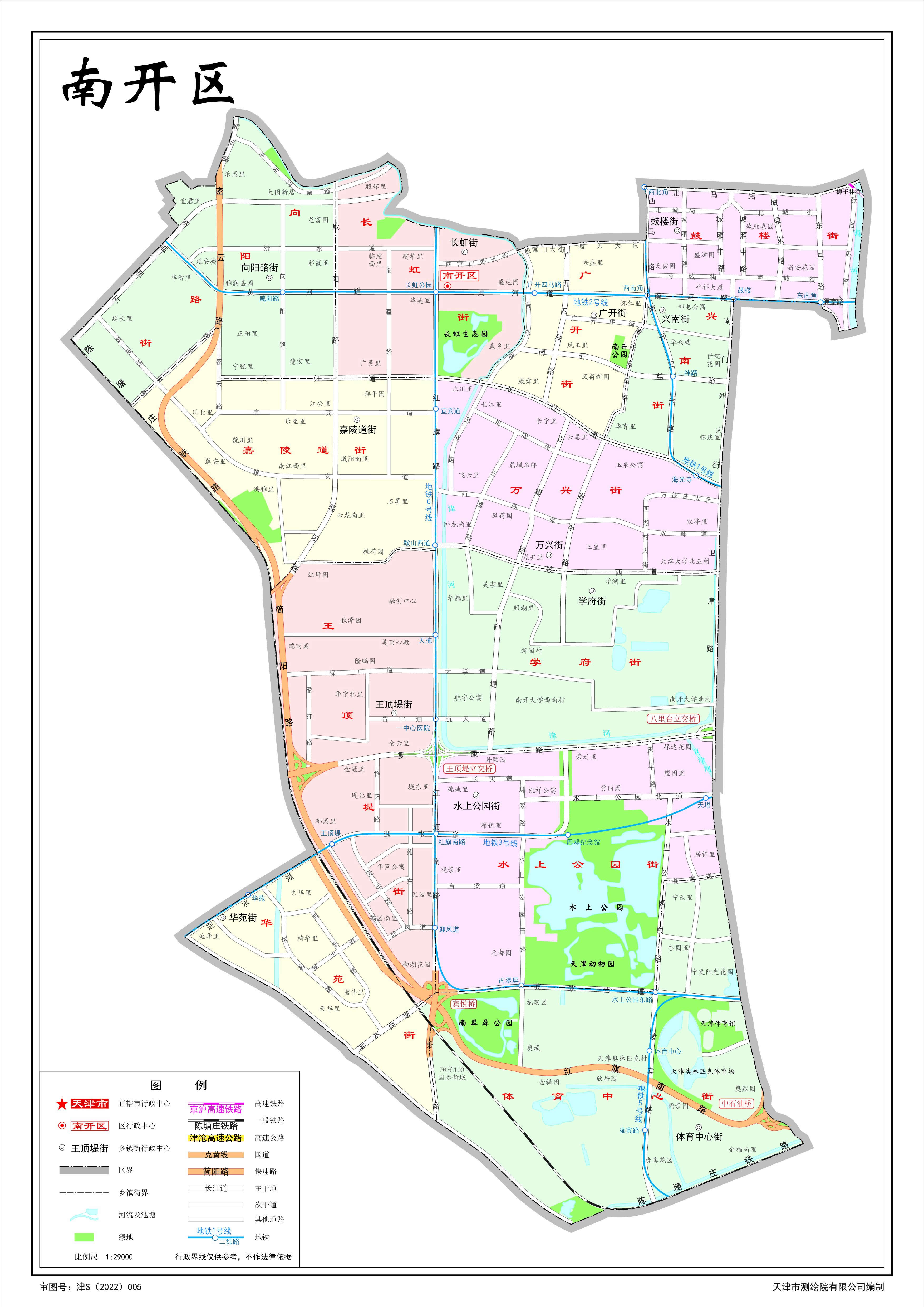南開區(qū)轄12個街道:長虹街道、鼓樓街道、興南街道、廣開街道、萬興街道、學(xué)府街道、向陽路街道、嘉陵道街道、王頂?shù)探值、水上公園街道、體育中心街道、華苑街道