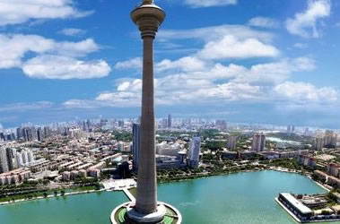 天津廣播電視塔,景名“天塔旋云”,集旅游觀光、餐飲娛樂和廣播電視發(fā)射多功能于一體。天塔總高度415.2米,水榭亭閣式的塔座上,三層跌水倒掛珠簾,水中涌泉撒花揚珠,配以剛?cè)嵯酀?jì)、碩長挺拔的塔身,被游人稱為“空中樓閣”。天塔四面環(huán)水,碧波綠水,雄偉的天塔聳立期間,天塔總高度415.2米,水榭亭閣式的塔座上,三層跌水倒掛珠簾,水中涌泉撒花揚珠,配以剛?cè)嵯酀?jì)、碩長挺拔的塔身,被游人稱為“空中樓閣”的飛碟型塔樓,這一切相得益彰,使天塔宛若一位臨波出浴的仙子。