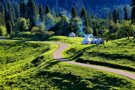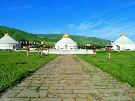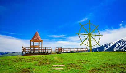哈薩克語為草原會客廳,是古時候草原民族商量重大事宜的地方,現(xiàn)為景區(qū)河谷草原線路的綜合服務(wù)區(qū)。可供游客體驗騎馬、射箭、民族服裝留念、古道馬車、草地摩托車、住宿、直升機(jī)觀景等娛樂項目、餐以及住宿服務(wù)。