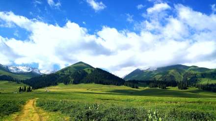 哈薩克語為“美麗的山溝”,是進(jìn)入河谷草原的第一站,擁有一山四景,白雪皚皚的山峰、茂密的森林、連綿起伏的山丘、平坦的草甸,是草原垂直自然景觀帶的窗口。其東側(cè)的山坡形似天山母親的耳朵,聆聽著大地的聲音,默默守護(hù)著天山,被稱之為“天山之耳”。西南側(cè)的山坡形似一匹昂首奔騰的駿馬,見者“馬到成功,飛黃騰達(dá)”被取名為“飛馬坪”。