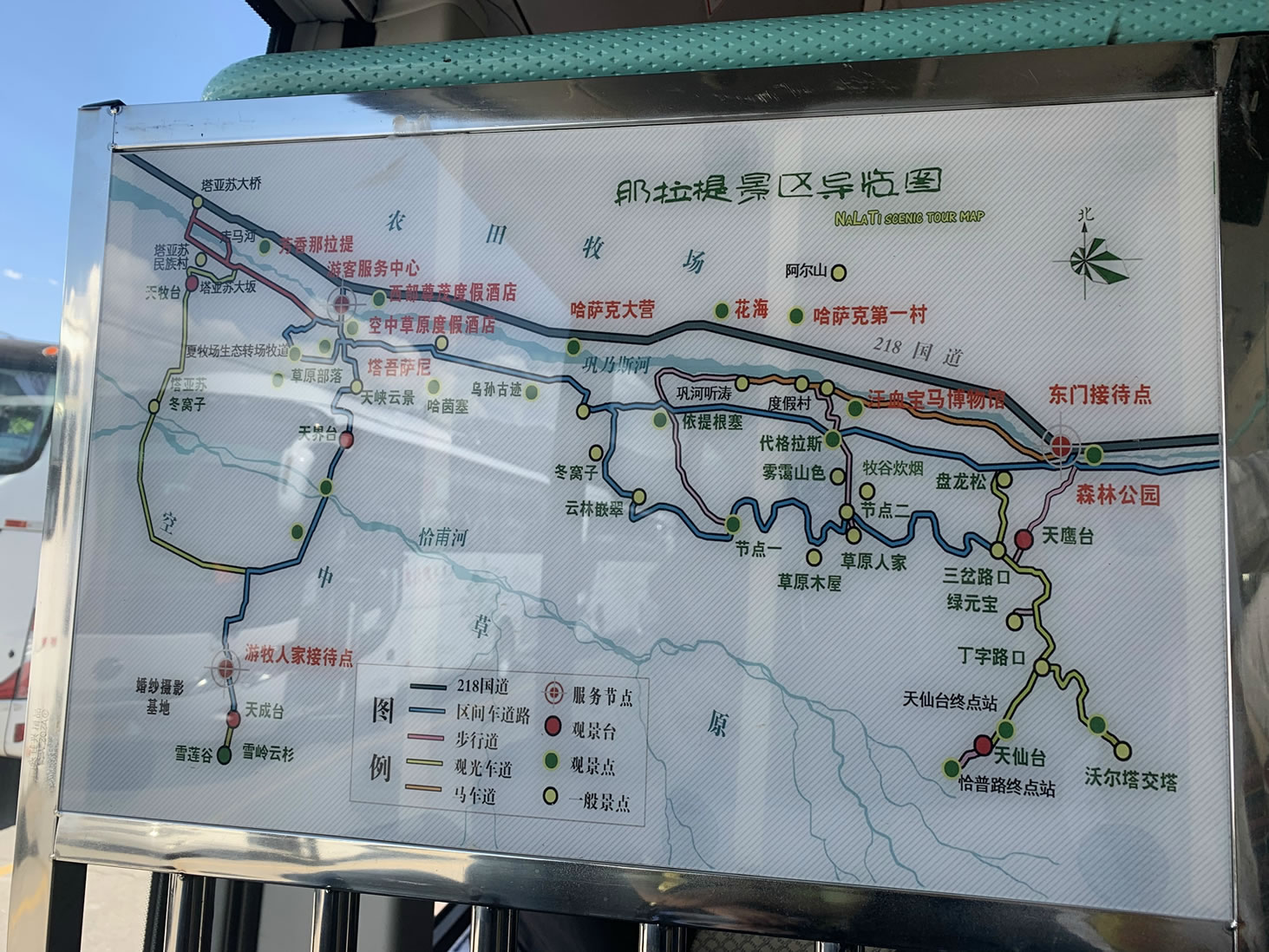那拉提旅游風(fēng)景區(qū)內(nèi)集草原、溝谷、森林于一體,植被覆蓋率高,野生動物資源豐富,因自然生態(tài)景觀和人文景觀獨具特色,而被譽(yù)為“天山綠島”“綠色家園”“五彩草原”。主要景點有天界臺、游牧人家、塔吾薩尼(哈薩克語意為“美麗的山溝”)、天仙臺、沃爾塔交塔觀景臺、雪蓮谷等。